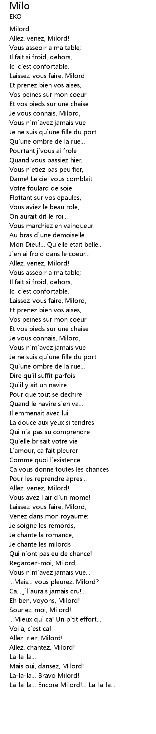 Allez, chantez, Milord! |