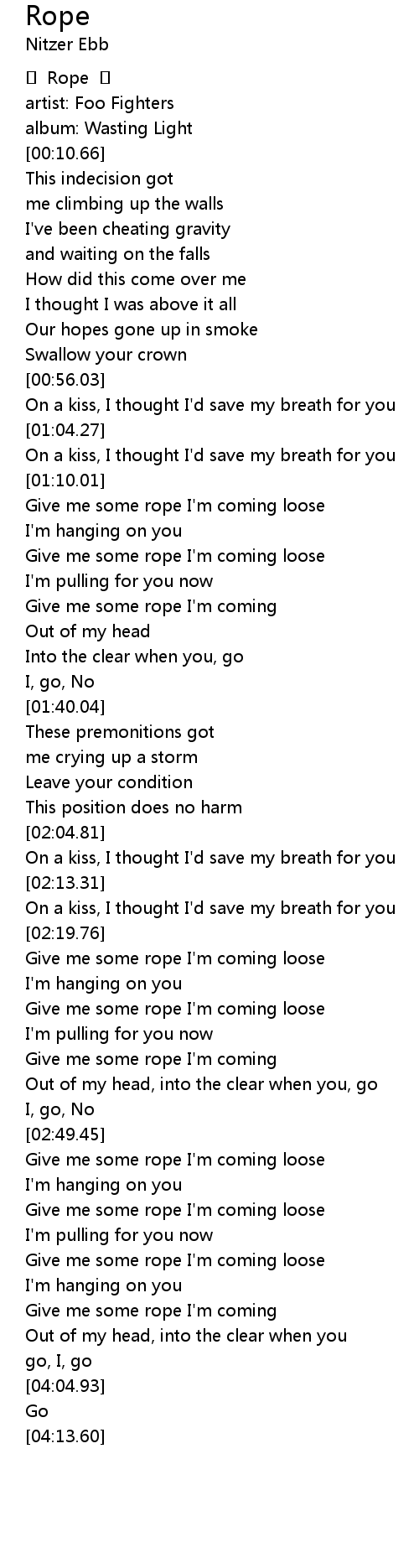 | [03:29.58] | Give me some rope I'm coming loose |
