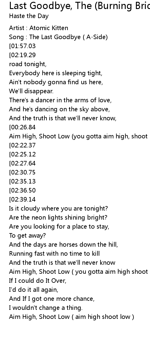 Aim High, Shoot Low (you gotta aim high, shoot low baby) |