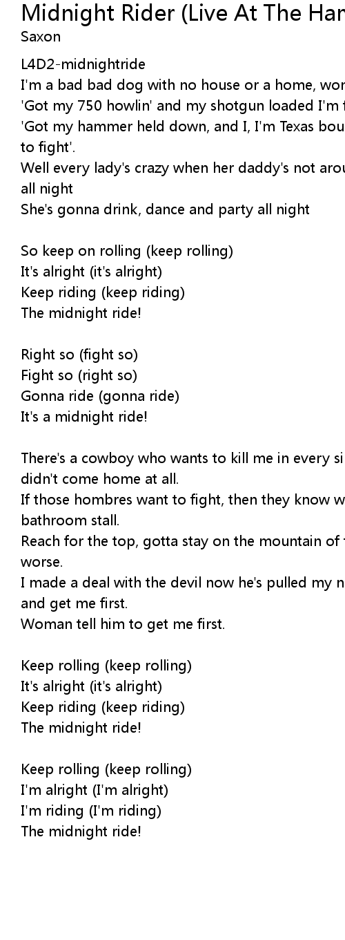 Midnight Rider (Live At The Hammersmith Odeon 25/10/81) (2009 Digital Remaster) Lyrics