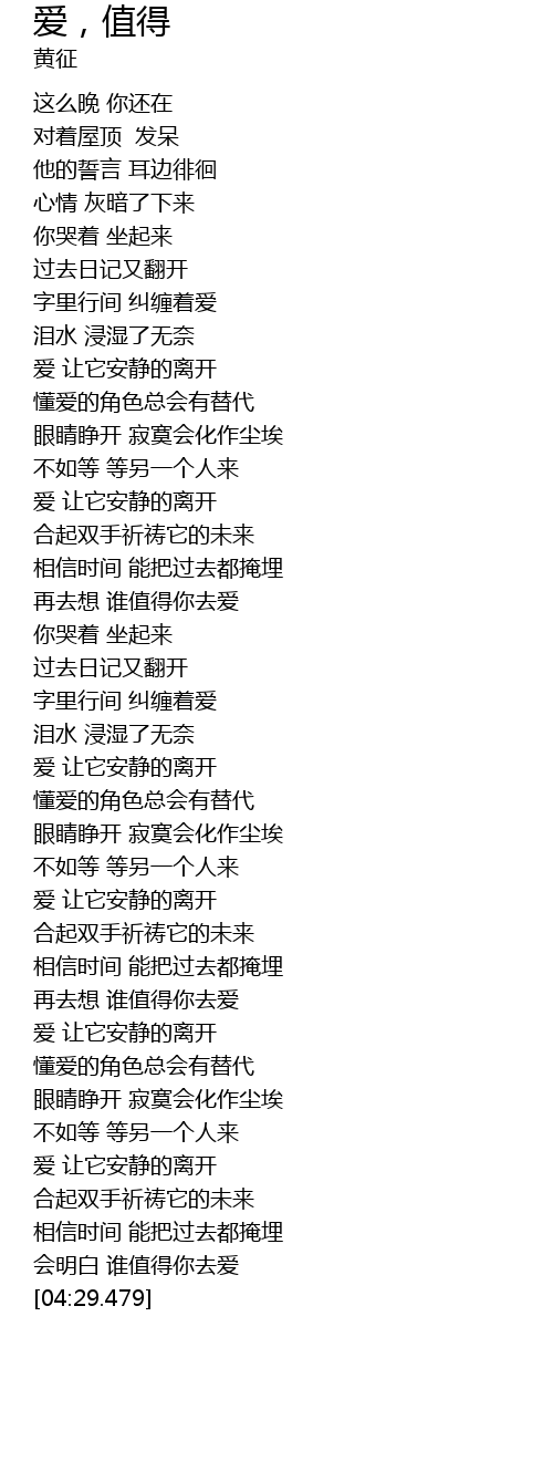 | [01:40.820] | 再去想 谁值得你去爱 |