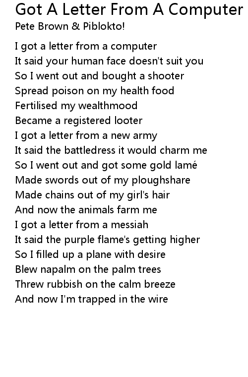 | Song | Got A Letter From A Computer |