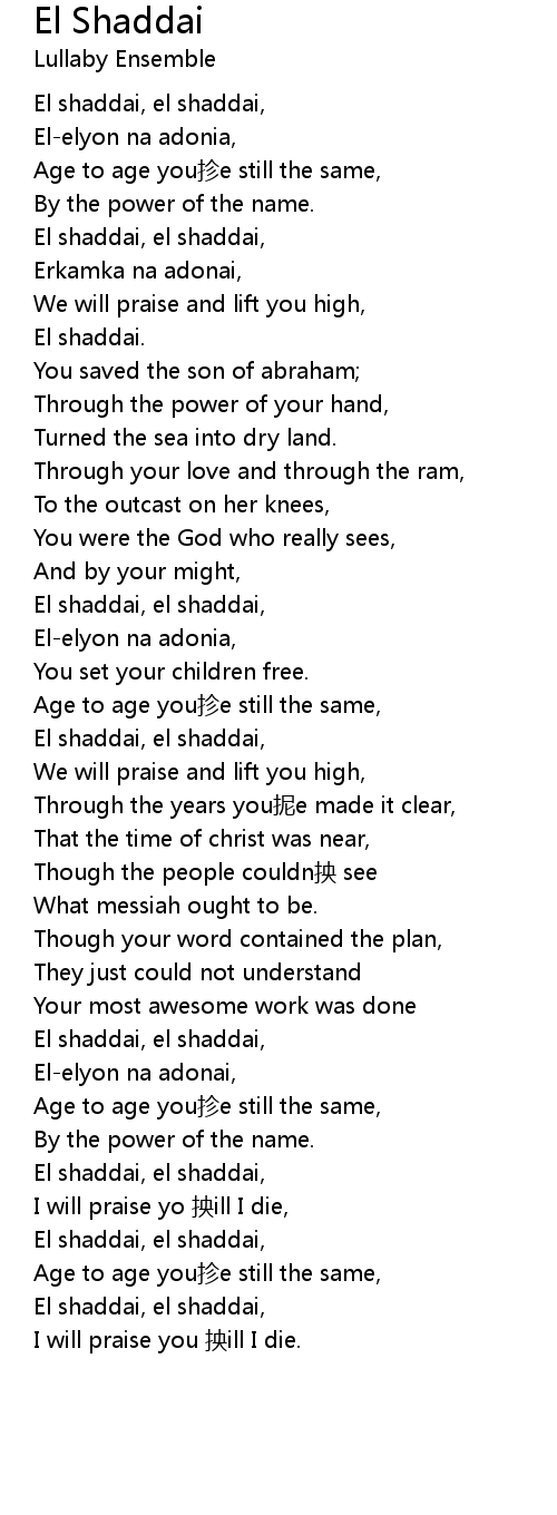 | [00:33.34] | El shaddai, el shaddai, |