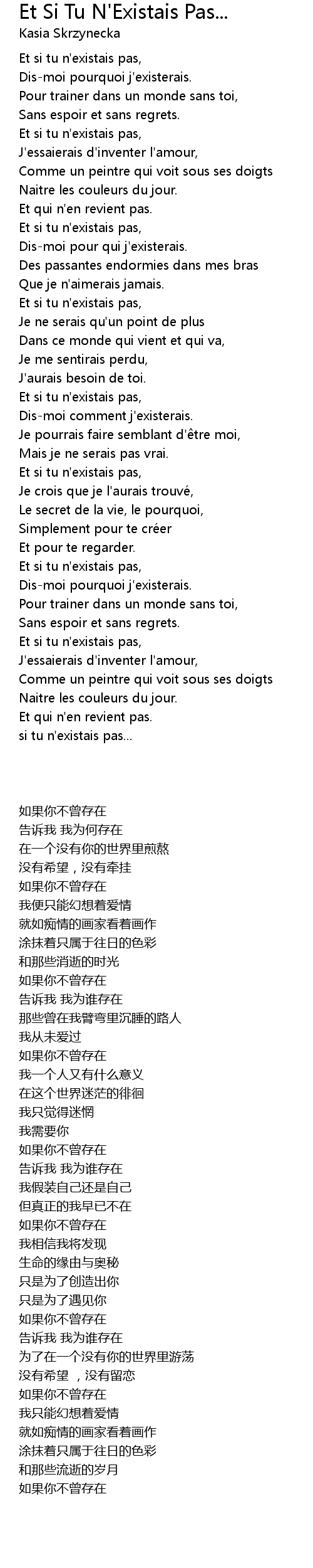 | [00:22.30] | Dismoi pourquoi j' existerais. |