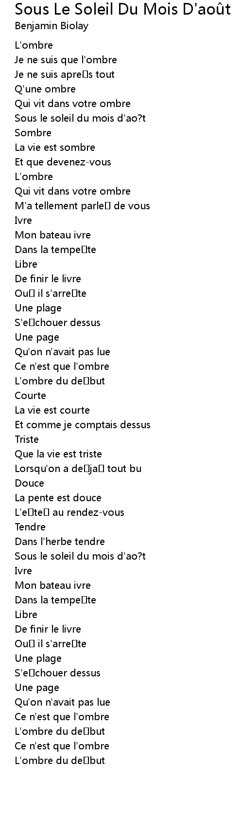 | [00:28.340] | Sous le soleil du mois d' ao? t |
