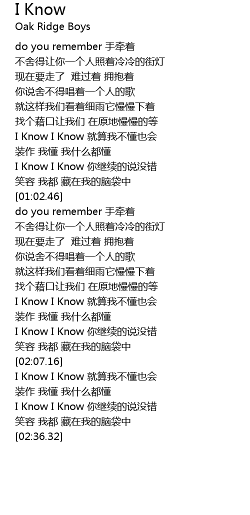 | [00:41.27] | I Know I Know jiu suan wo bu dong ye hui |