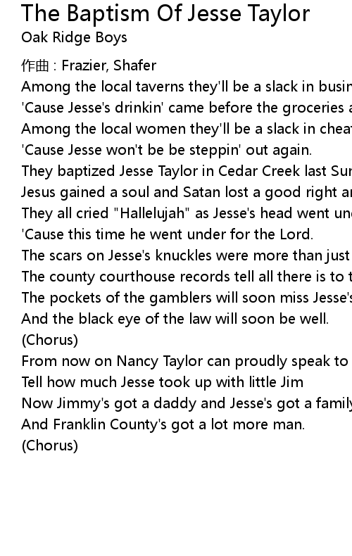 | They all cried " Hallelujah" as Jesse' s head went under | |