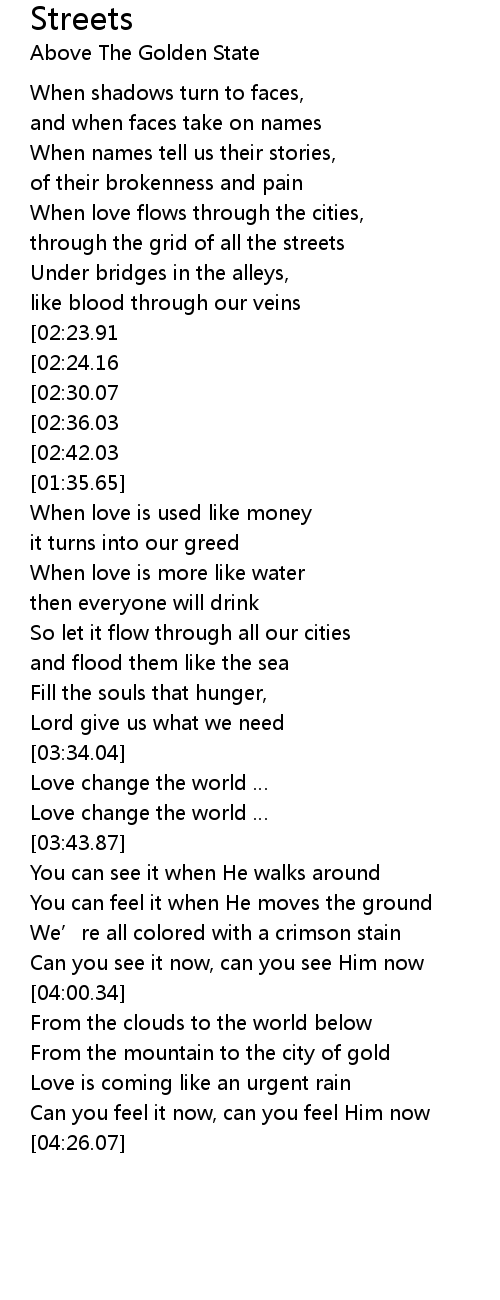 | [00:49.24] | When love flows through the cities, |