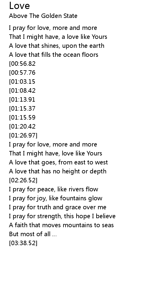 | [00:36.27] | I pray for love, more and more |