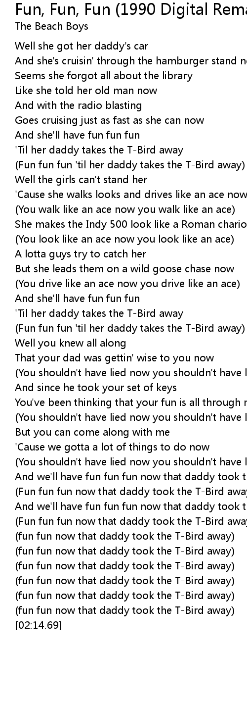 [00:40.18] (Fun fun fun 'til her daddy takes the T-Bird away)