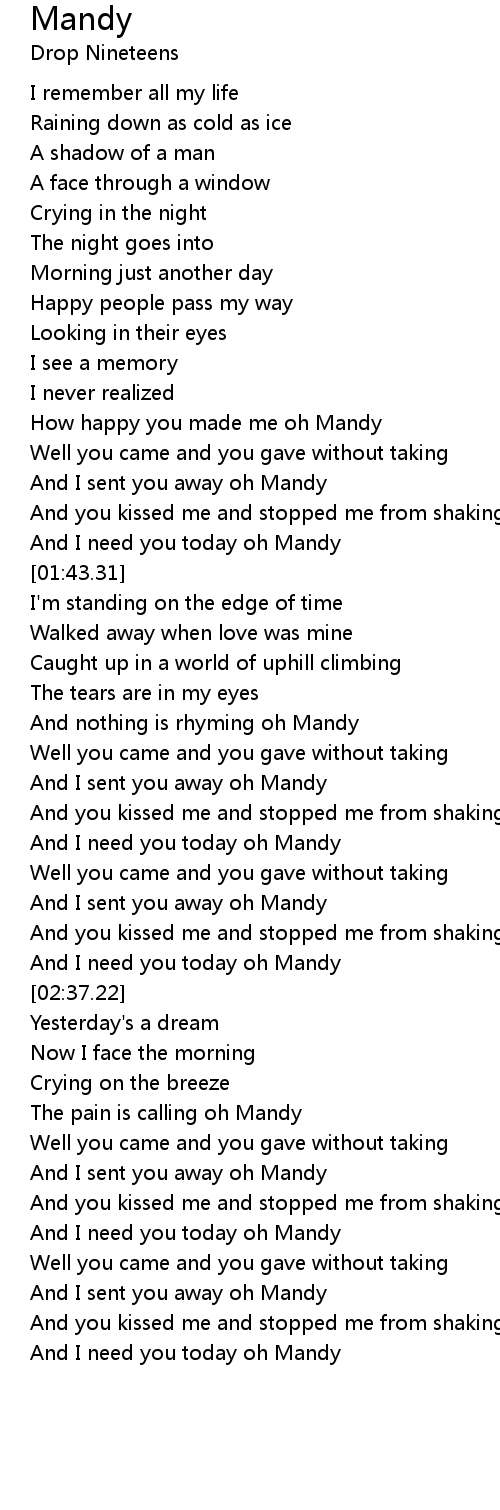 And I need you today oh Mandy |