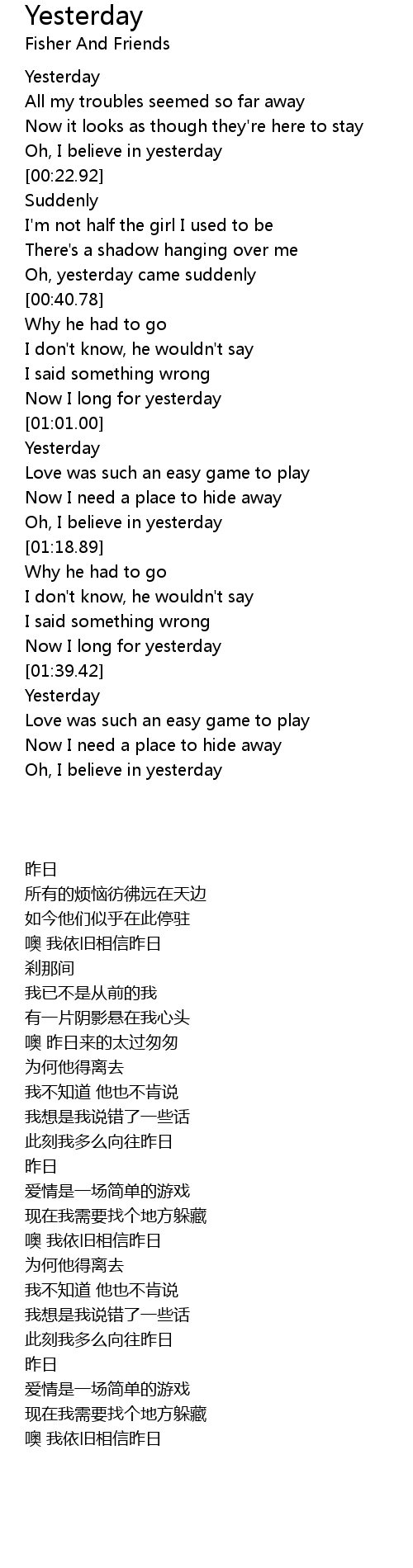 Oh, yesterday came suddenly |