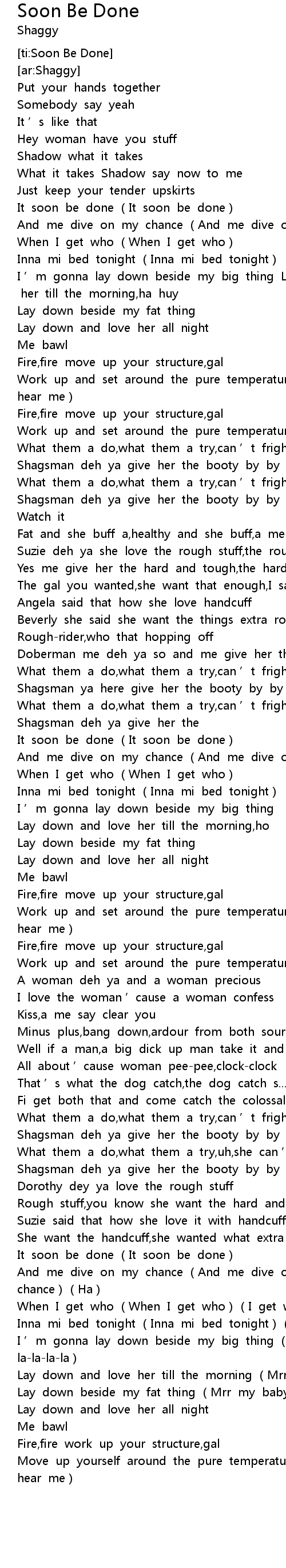 | [01:03.92] | Shagsman deh ya give her the booty by by |