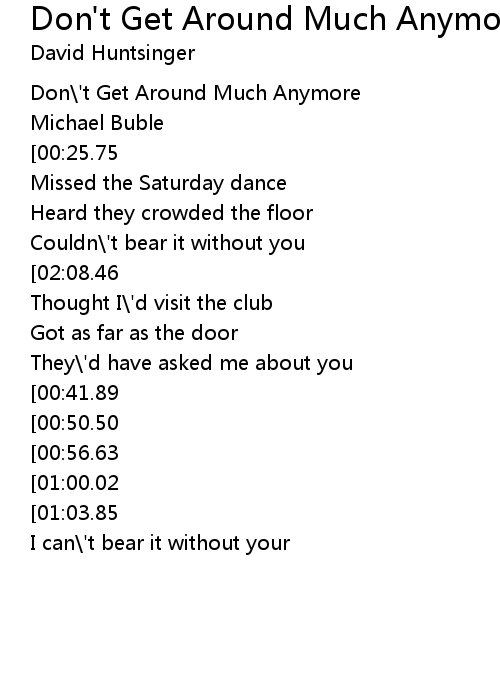 [02:16.07][02:08.46][01:07.89][00:37.53][00:21.98] Don\'t get around much anymore