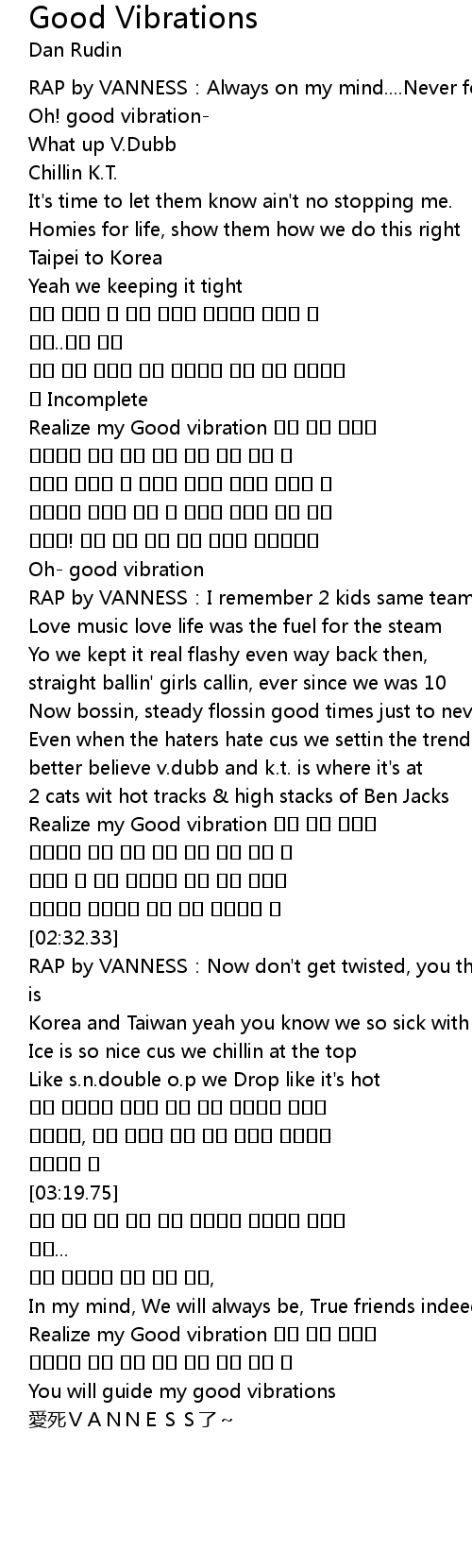 | [03:38.35] | Realize my Good vibration 네게 등을 기대면 |