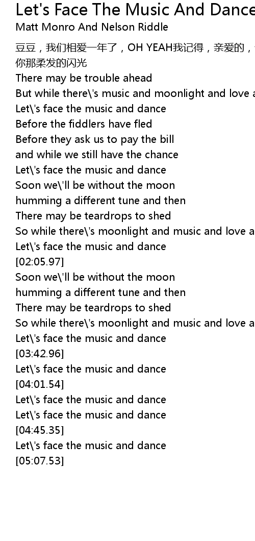 | [00:38.74] | But while there' s music and moonlight and love and romance |