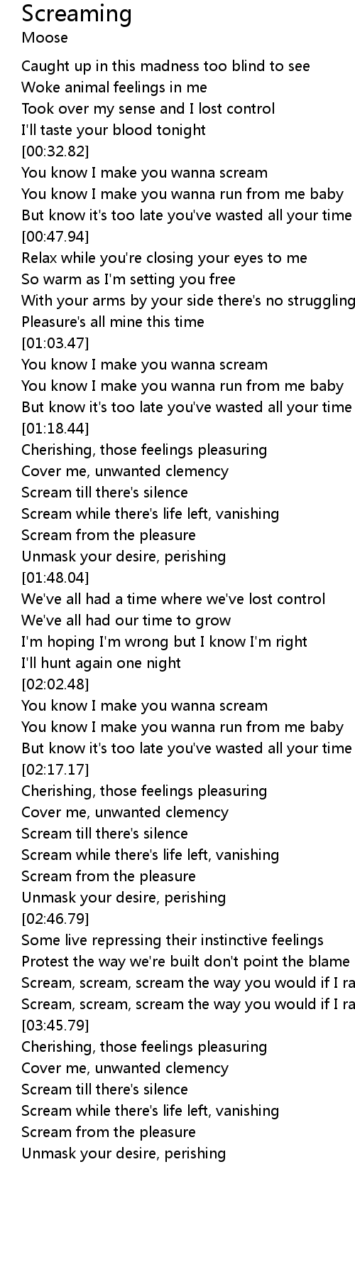 | [03:32.54] | Scream, scream, scream the way you would if I ravaged your body |