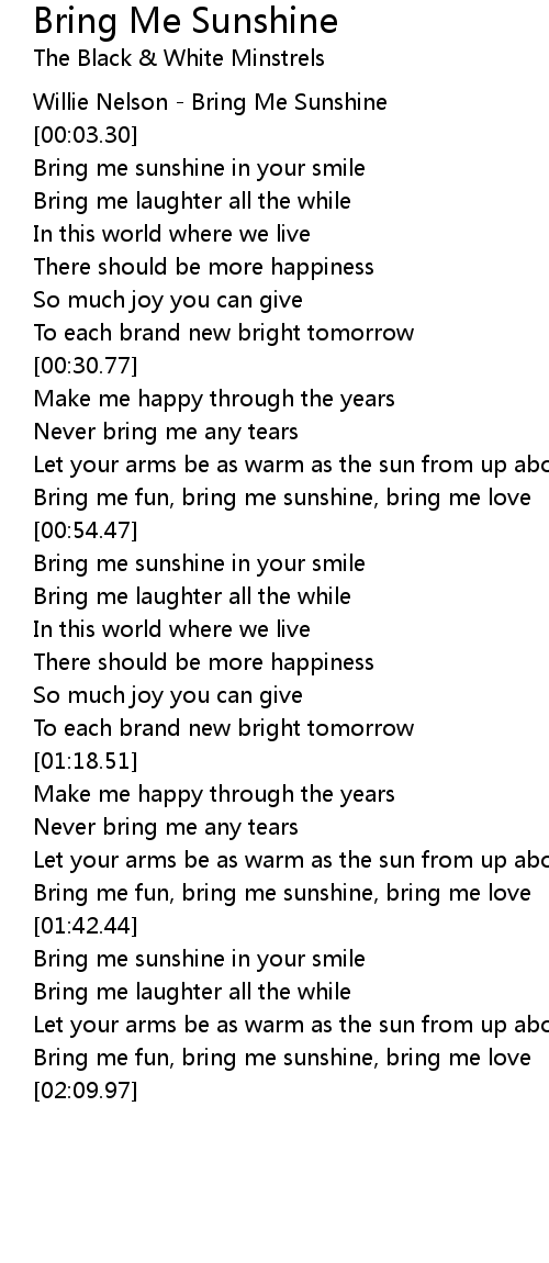 Bring me sunshine in your smile |