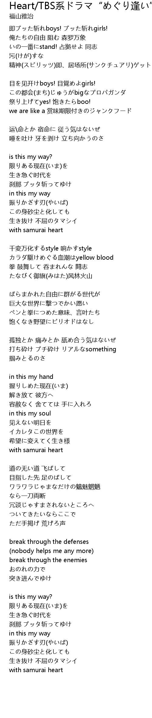 | Song | Heart/TBS系ドラマ“めぐり逢い” 主题歌 |