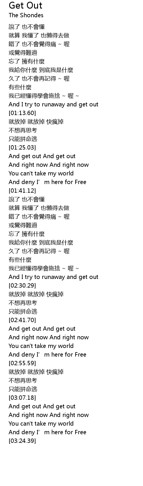 | [02:41.88] | And get out And get out |