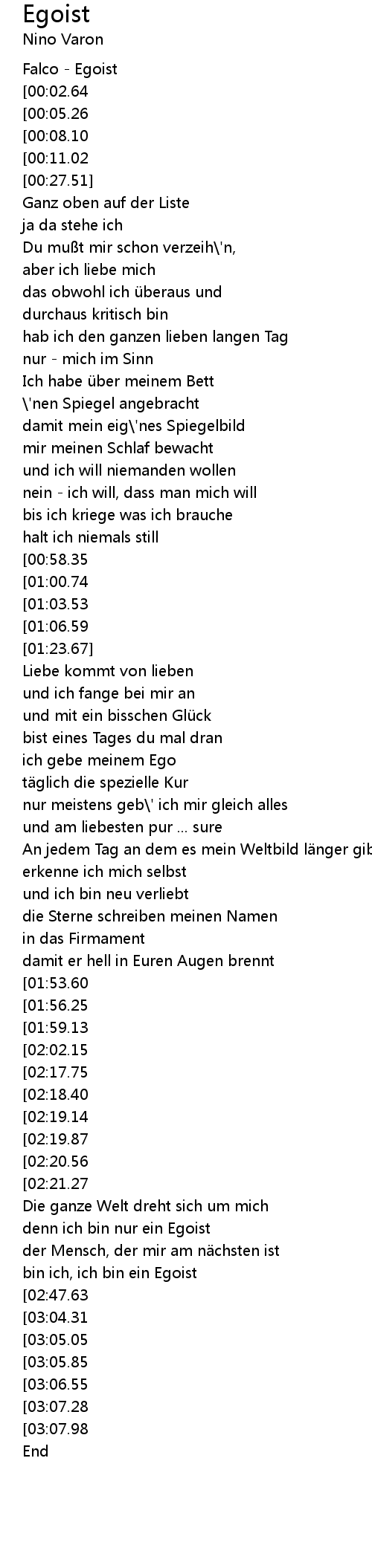 | [02:38.46] | bin ich, ich bin ein Egoist |