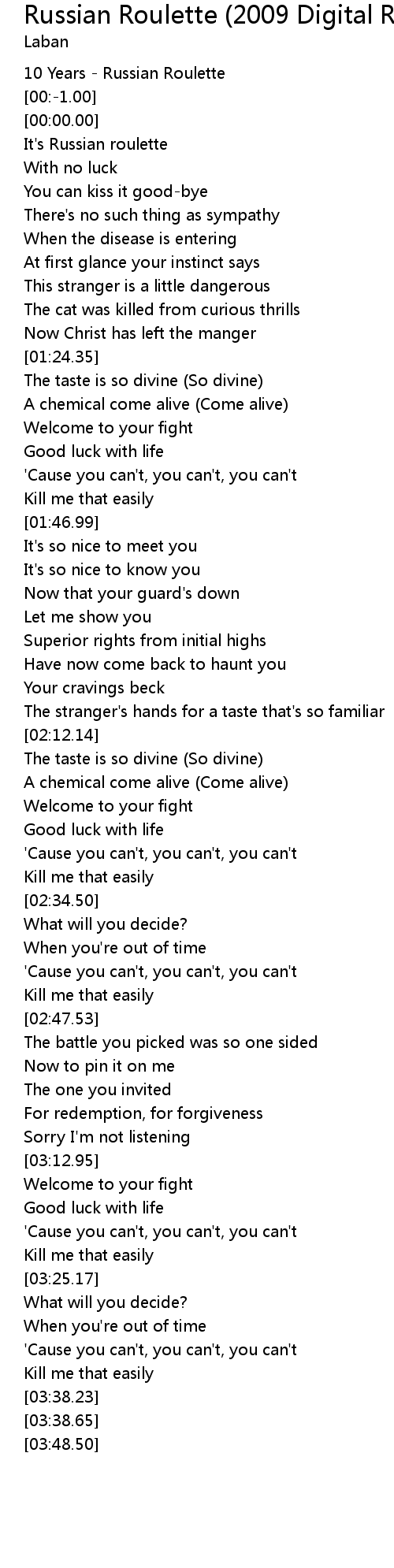 10 Years - Russian Roulette |