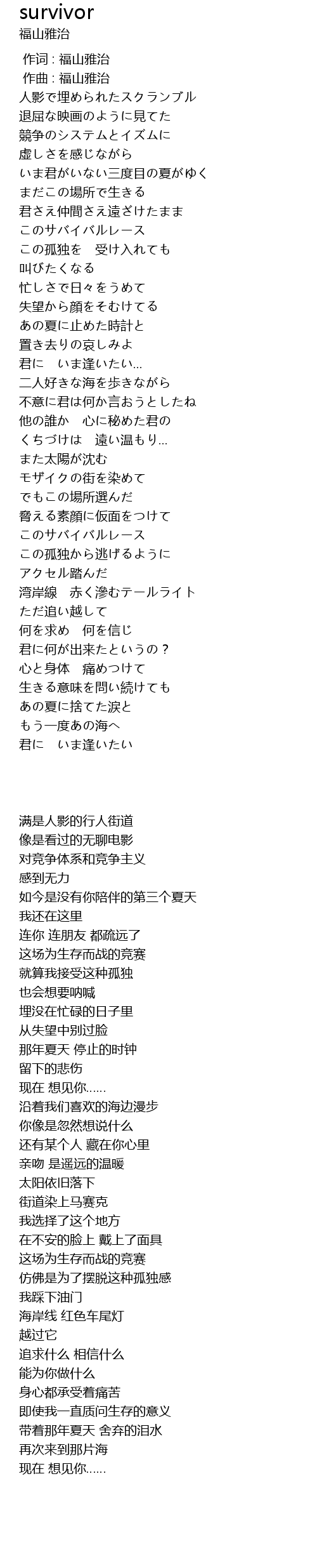 作词 : 福山雅治 |