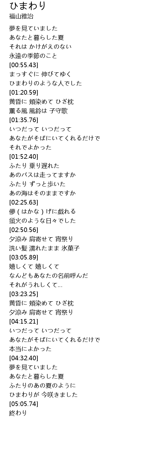 | [02:53.23] | 夕涼み 肩寄せて 宵祭り |