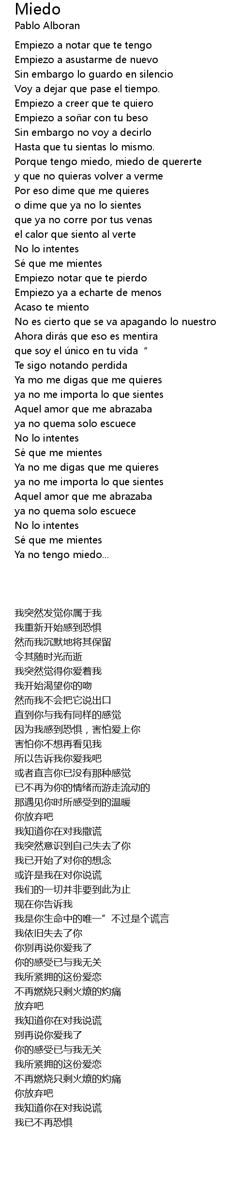 | [00:53.36] | Porque tengo miedo, miedo de quererte |