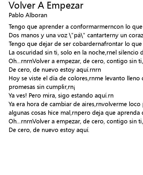 | Oh... rnrnVolver a empezar, de cero, contigo sin ti, rnvolver a empezar, oh! rn | |
