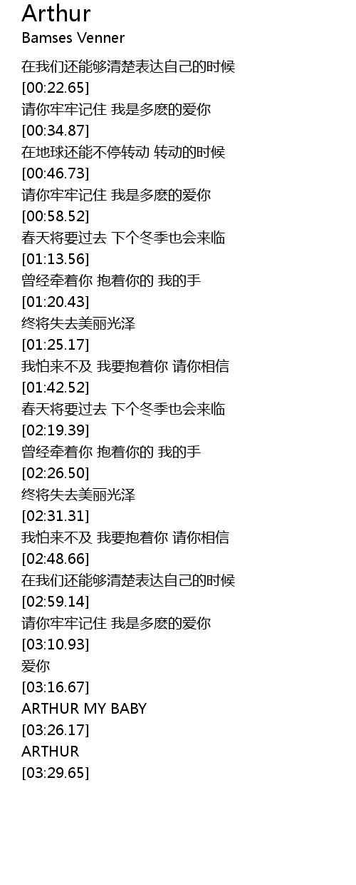 | [03:20.92] | ARTHUR MY BABY |