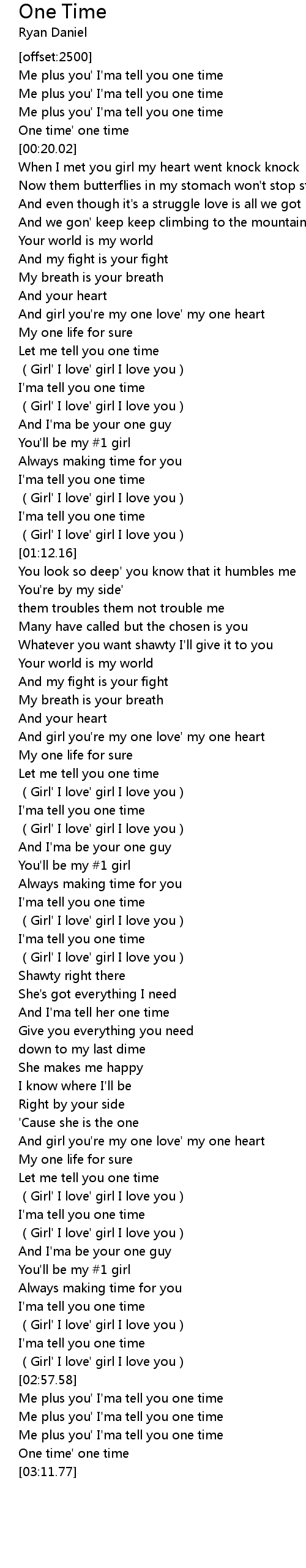 | [00:07.24] | Me plus you' I'ma tell you one time |