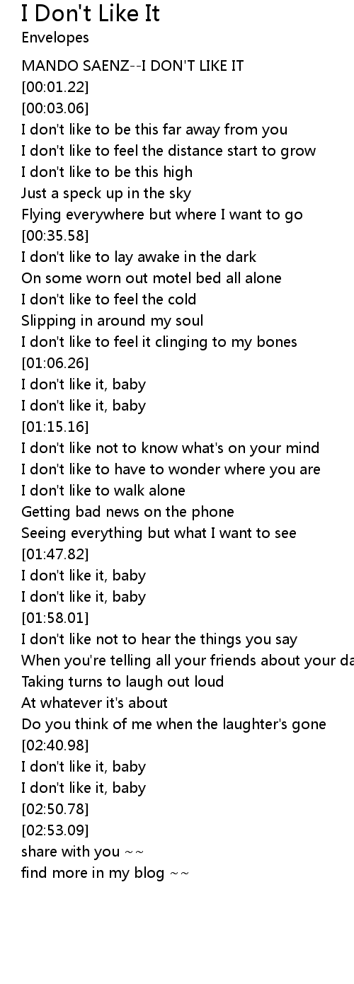 | [00:00.00] | MANDO SAENZ--I DON'T LIKE IT |