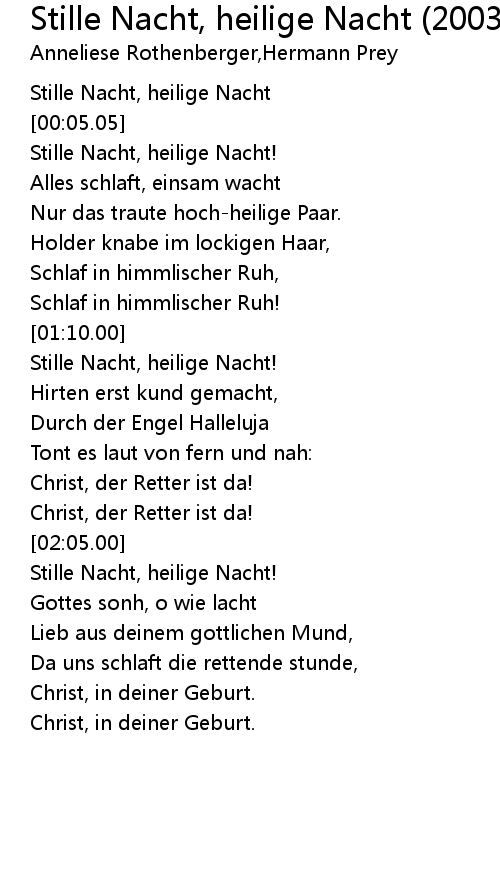 Stille Nacht, heilige Nacht (2003 Digital Remaster) Lyrics