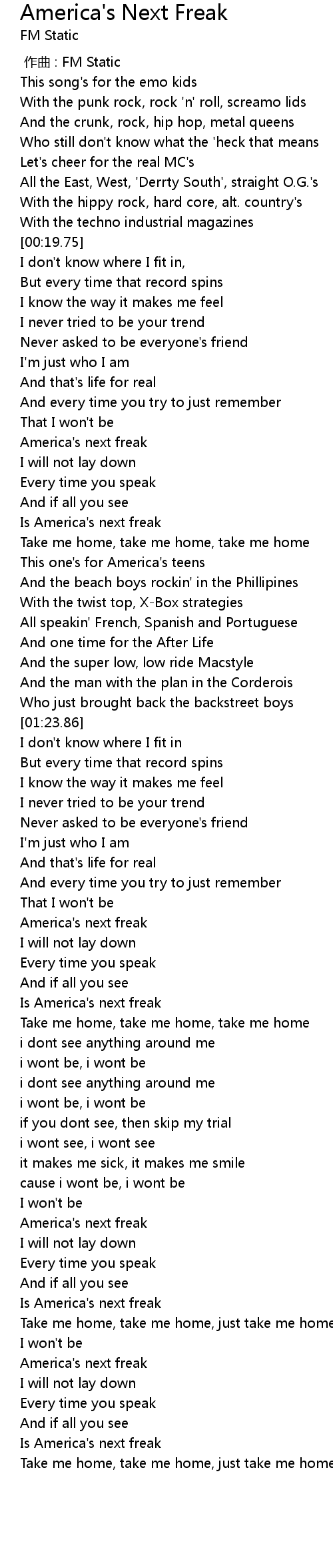 | [00:47.44] | America's next freak |