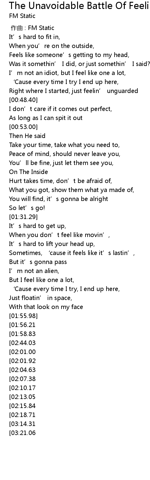 | Song | The Unavoidable Battle Of Feeling On The Outside |