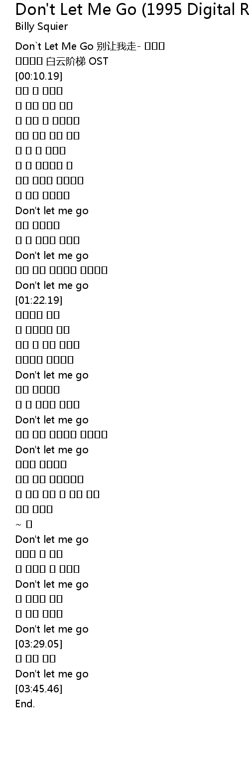 | [00:00.00] | Don t Let Me Go bié ràng wǒ zǒu |
