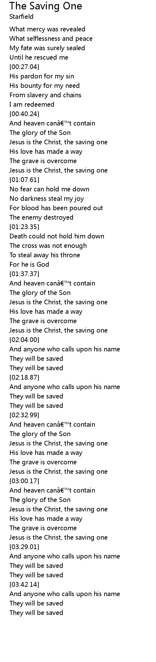 | [00:47.03] | Jesus is the Christ, the saving one |