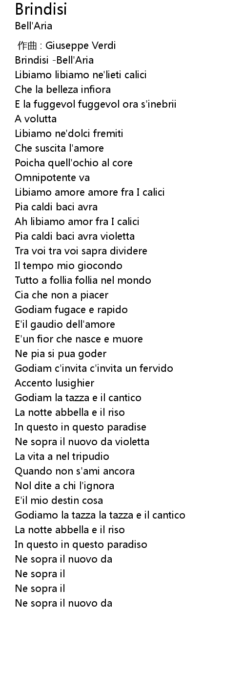 | [00:53.625] | Libiamo amore amore fra I calici |