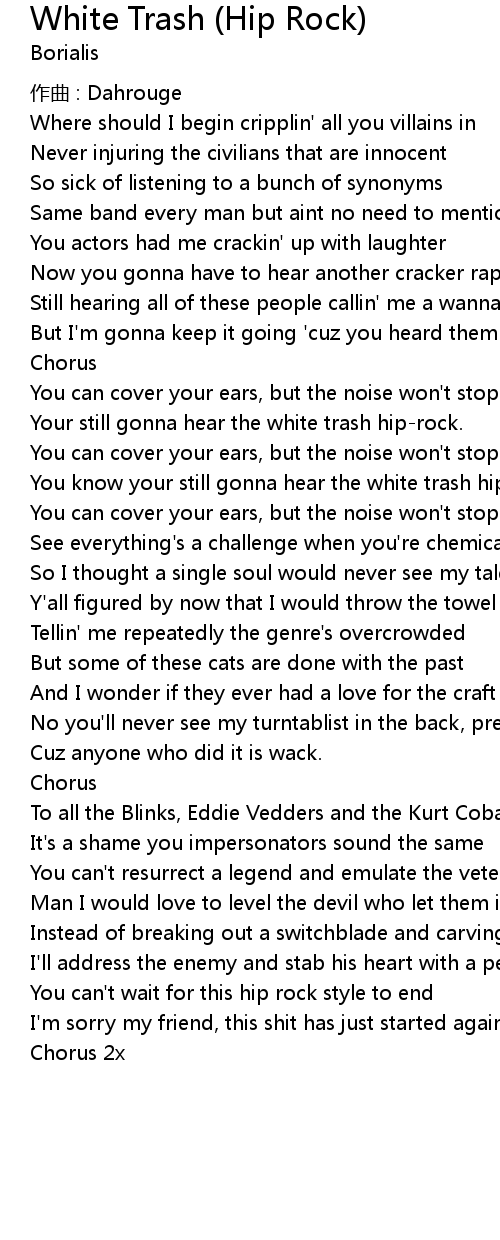 | You know your still gonna hear the white trash hiprock, | |