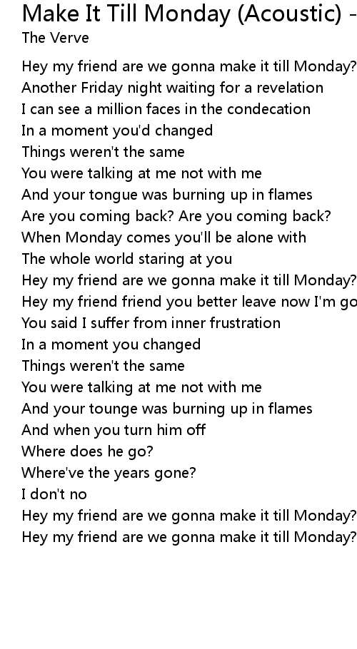 Hey my friend are we gonna make it till Monday? |