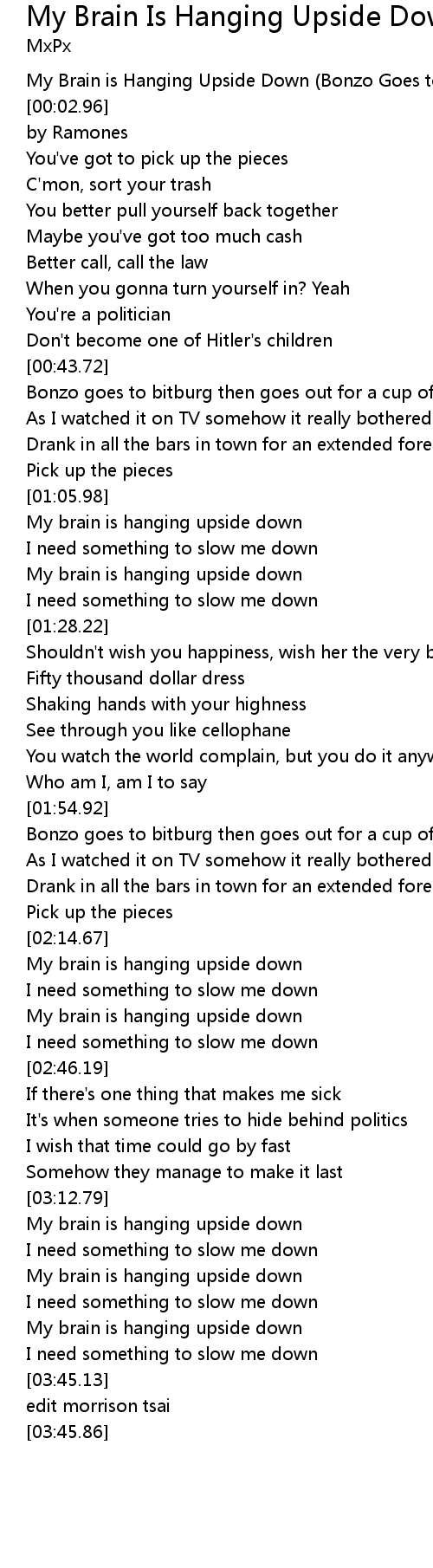 My Brain is Hanging Upside Down (Bonzo Goes to Bitburg) |