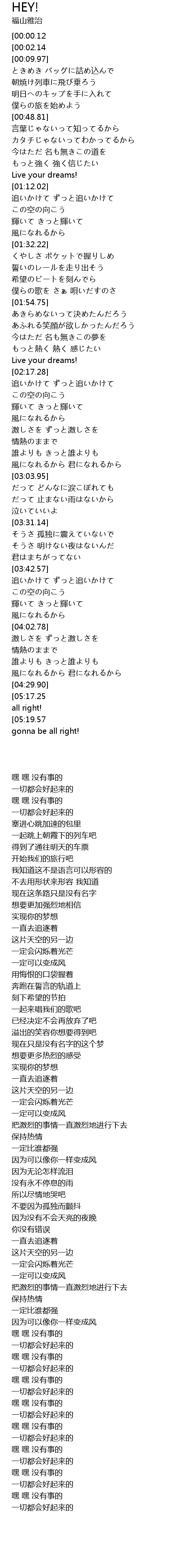 | [00:04.78][00:00.12] | Hey!Hey!Its all right! |