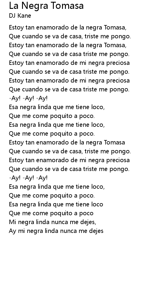 | Estoy tan enamorado de la negra Tomasa, | |