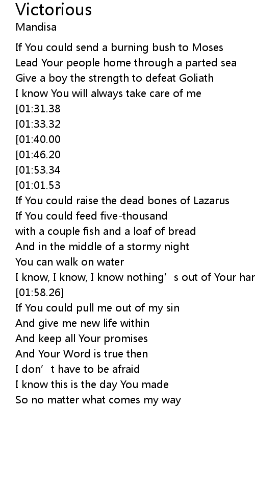 | [02:44.90][01:53.34][00:54.94] | Knowing You will deliver me |