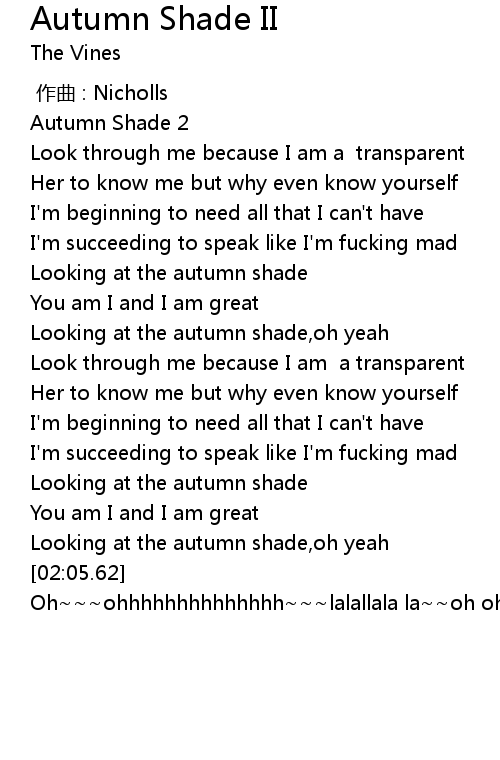 | [00:52.07] | Looking at the autumn shade, oh yeah |