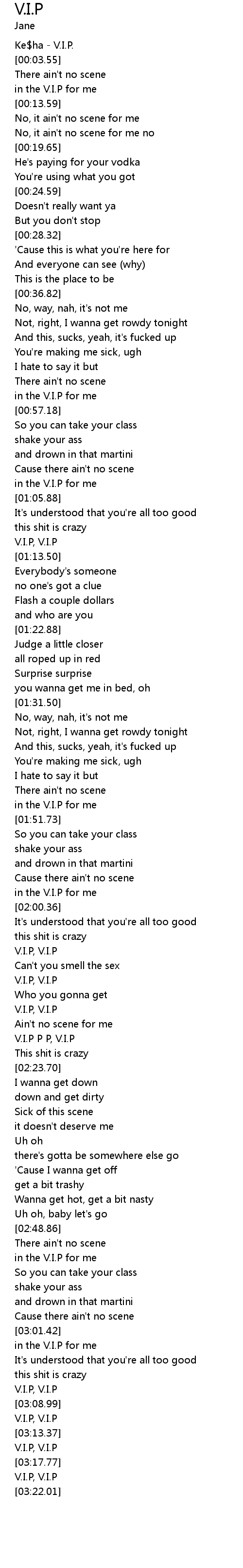 | [00:01.00] | Ke$ha - V.I.P. |