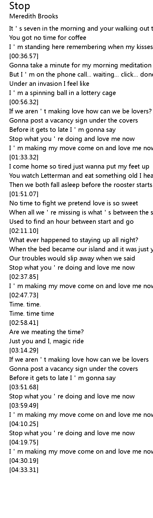 | [04:14.57] | Stop what you re doing and love me now |