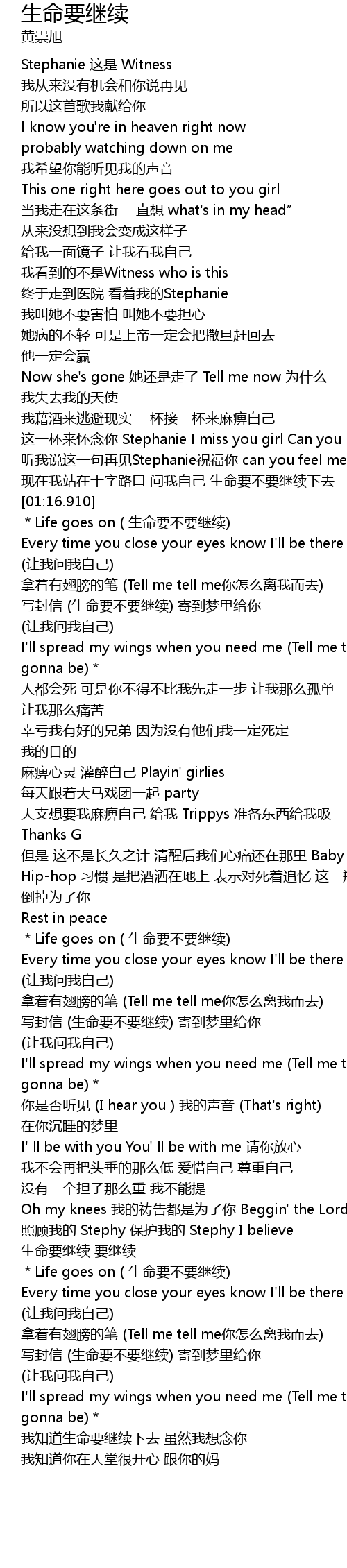 | [02:12.730] | *Life goes on ( 生命要不要继续) |