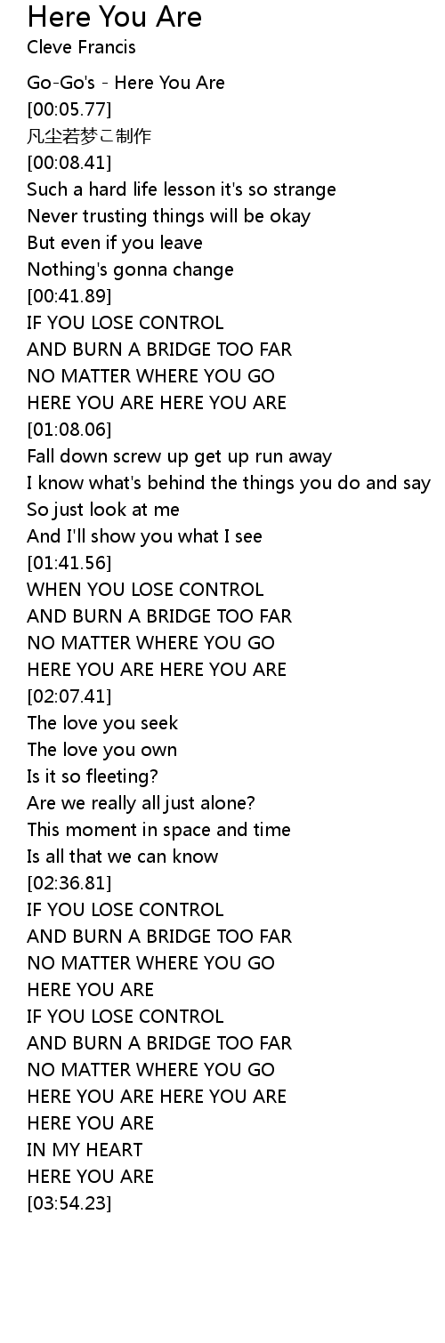 | [00:58.55] | HERE YOU ARE HERE YOU ARE |